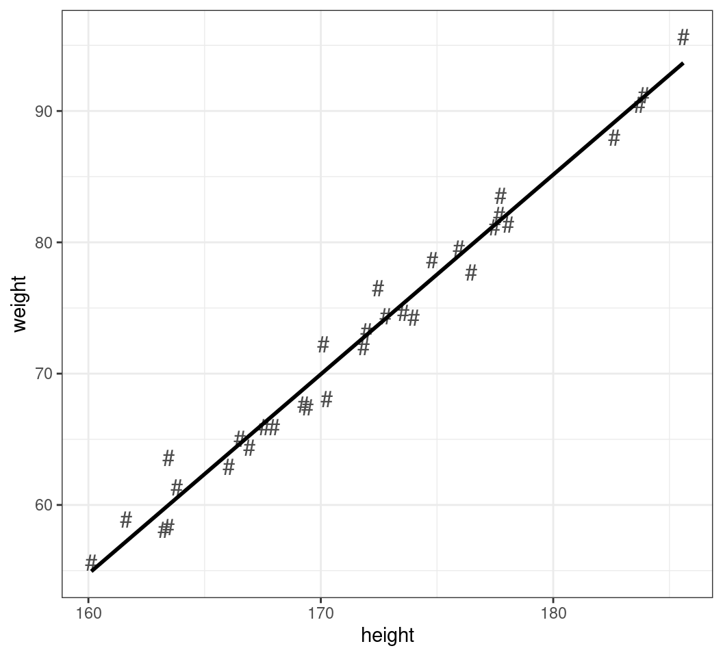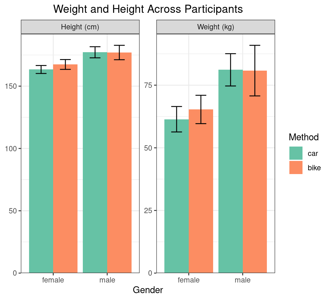 p +ggtitle("Weight and Height Across Participants") +theme(plot.title =element_text(hjust =0.5))