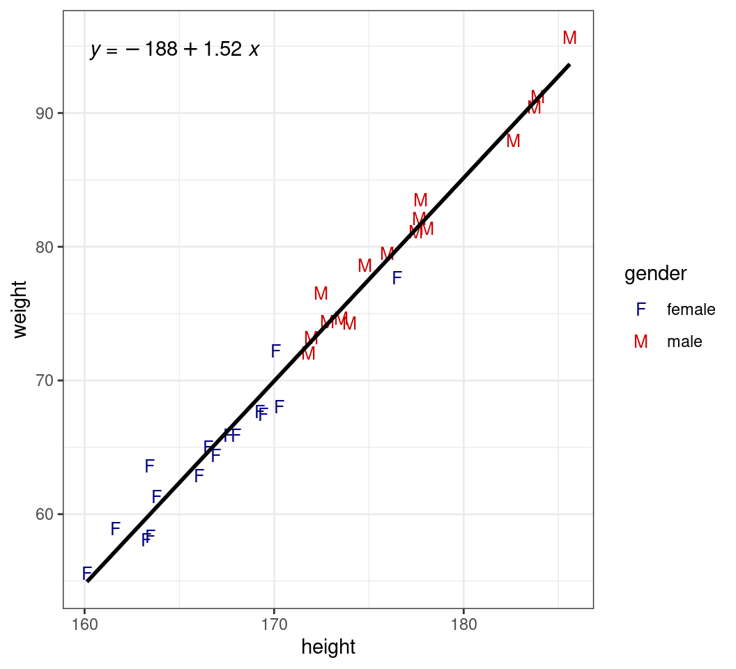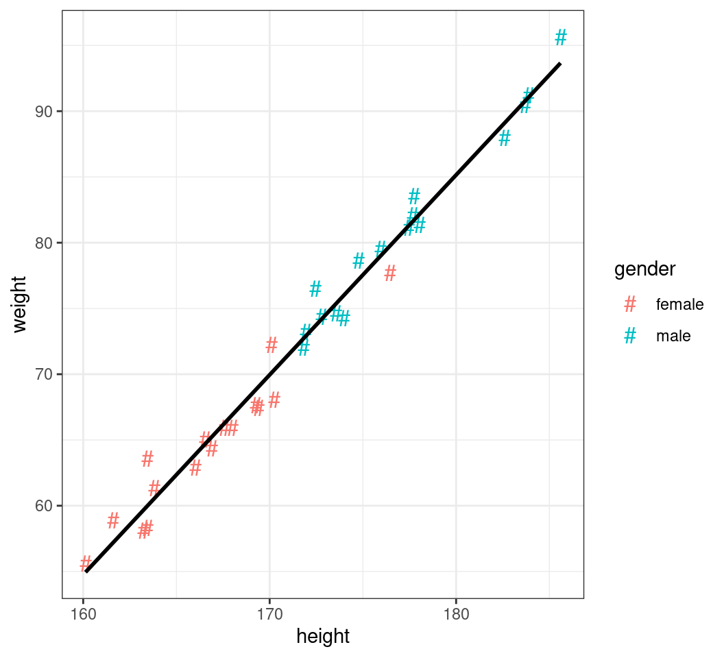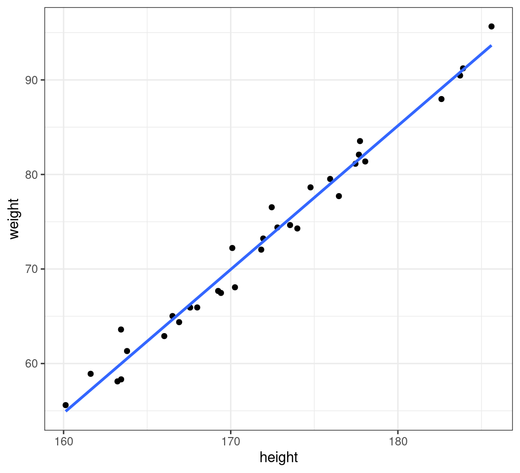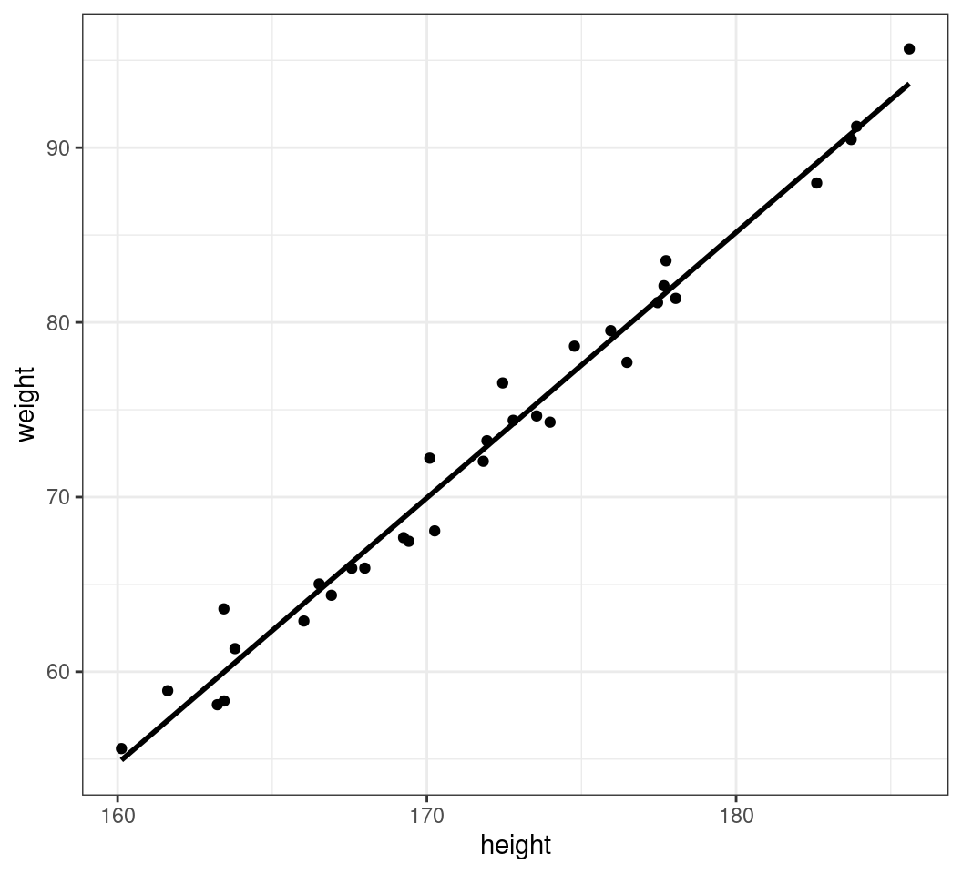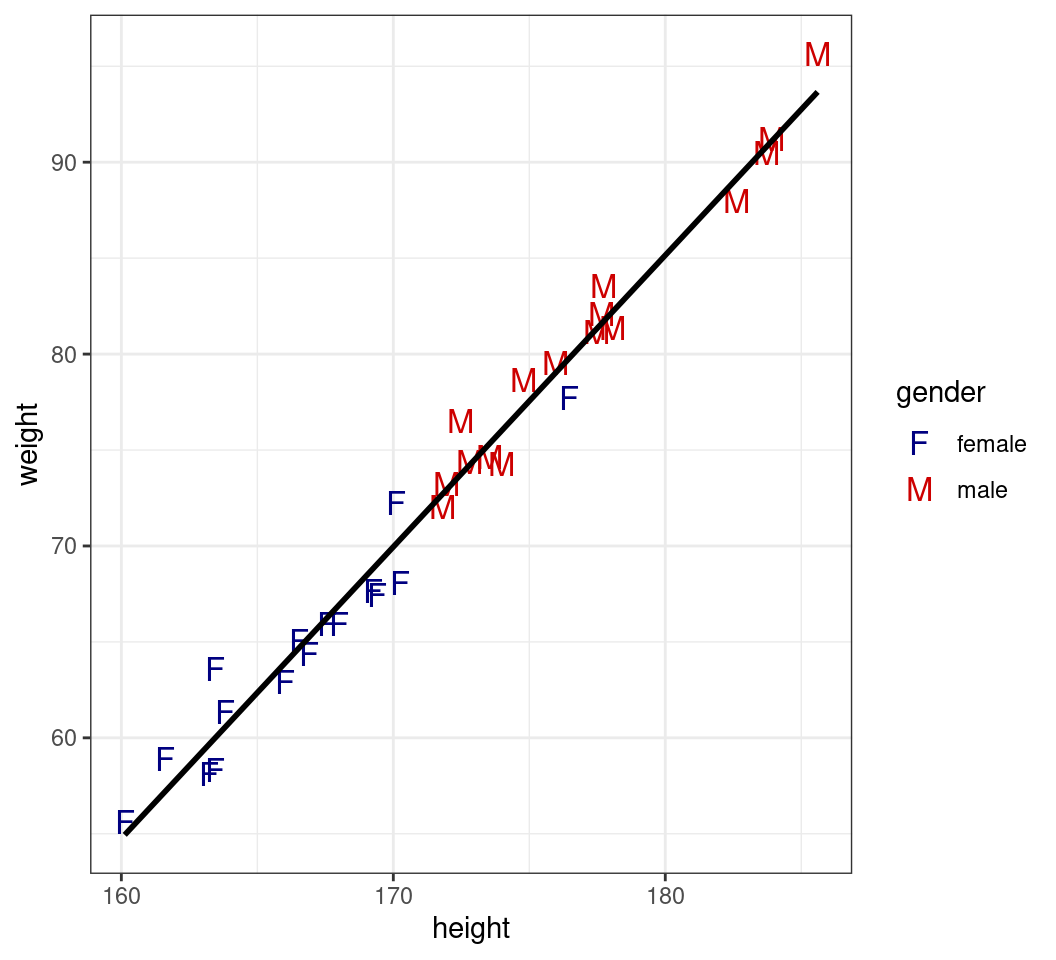 p +ggtitle("Weight and Height Across Participants") +theme(text =element_text(size =14),plot.title =element_text(hjust =0.5),legend.position ="bottom" )
