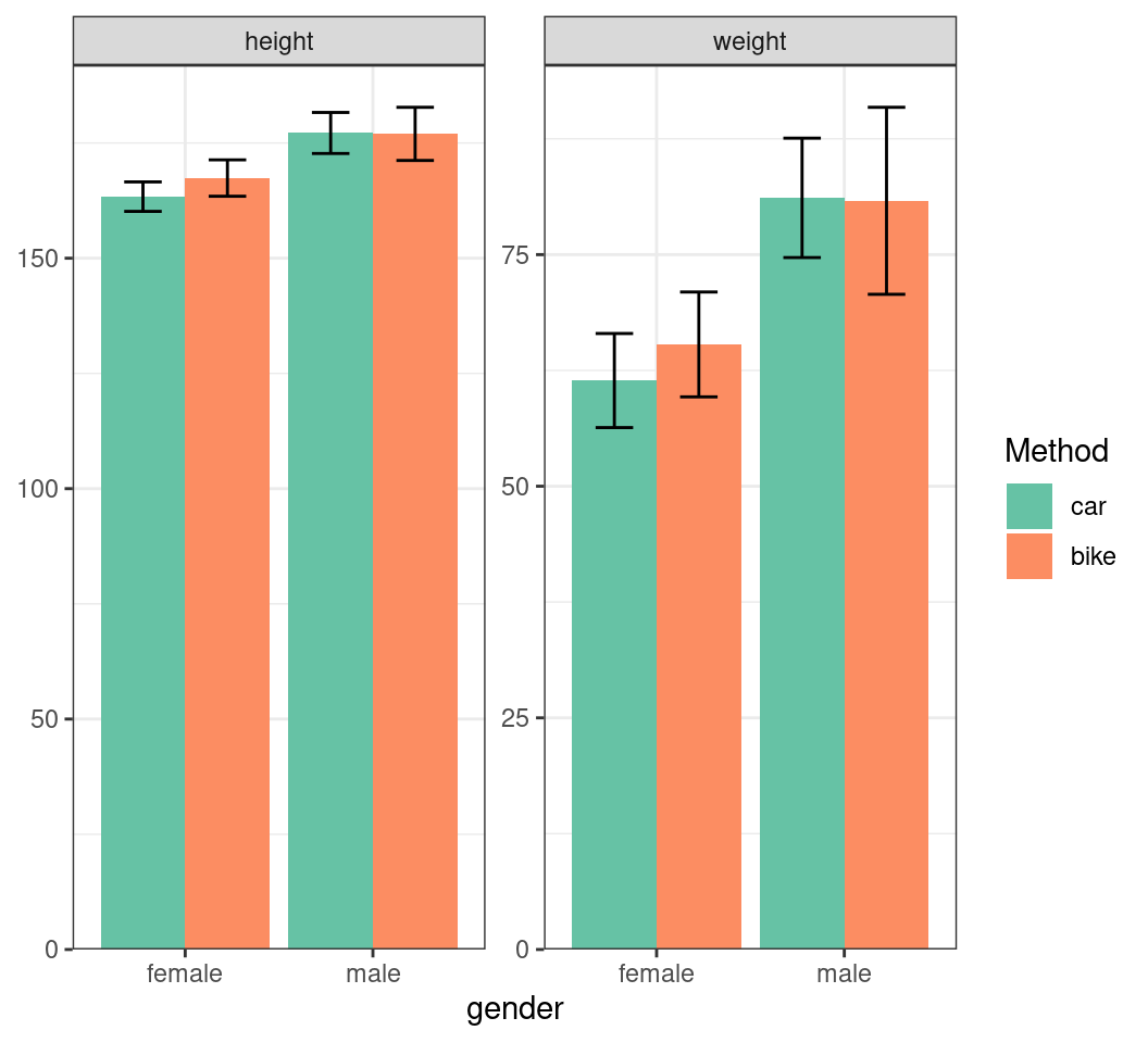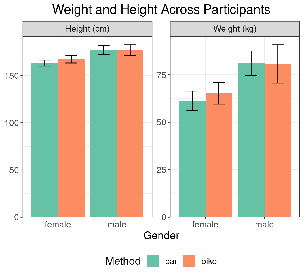 p +ggtitle("Weight and Height Across Participants") +theme(text =element_text(size =14),plot.title =element_text(hjust =0.5),legend.position ="bottom",panel.grid =element_blank(),axis.text.x =element_text(angle =90, vjust =0.5, hjust =1 ) )