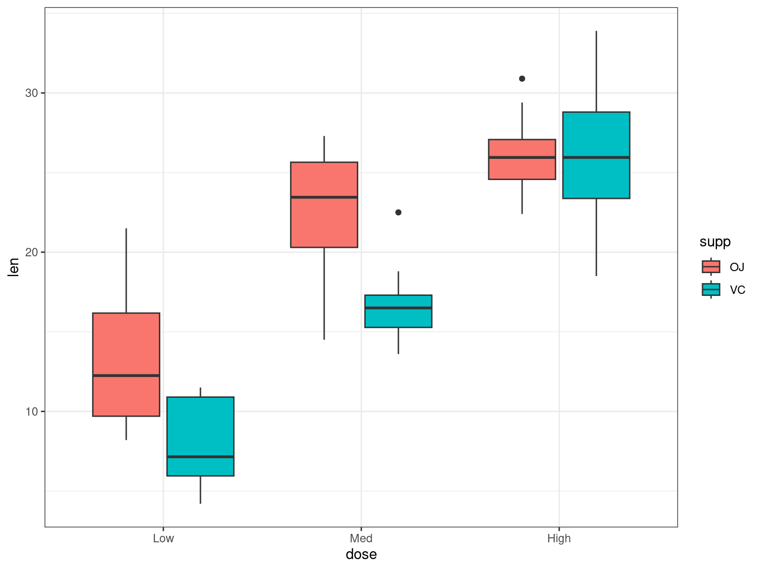 R formula method: len~supp