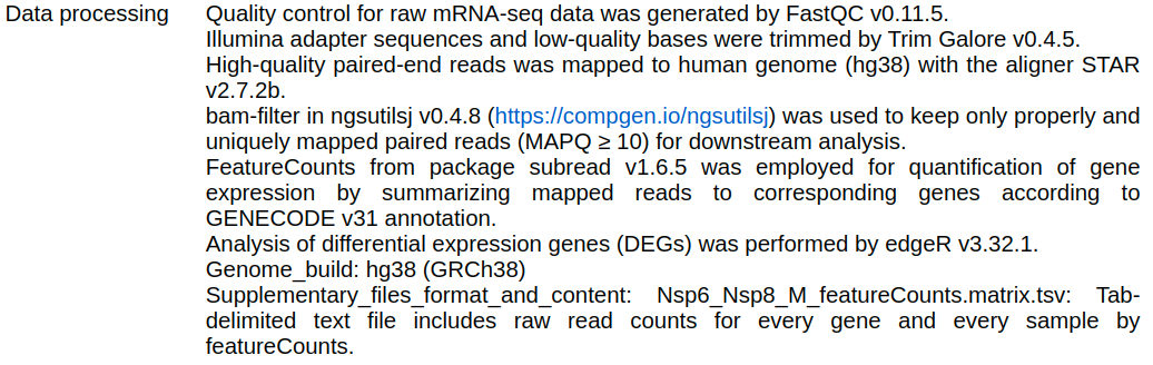 Geneid Chr Start End Strand Length `1_control` `6_control` `11_control` `2_Nsp6` `7_Nsp6`